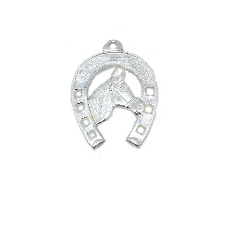 COLGANTE HERRADURA CON CABEZA DE CABALLO FABRICADO EN PLATA DE LEY. POSIBILIDAD DE HACERLO EN LLAVERO.